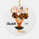 Orange & Black Cheer Cute Brunette Cheerleader Ornament. Easy to personalize with your name & date. Visit our shop to view this ornament in a large variety of school colours & hair colours
