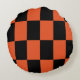 Orange black Chequered Check Pattern Round Pillow