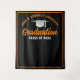 This modern orange and black custom graduation party tapestry features classy typography of your high school or college name for the class of 2025. Customize this photo booth backdrop with your graduating year under the chic handwritten script and grad cap for great personalized graduate decor.