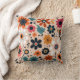 Orange Black Flowers Pattern Beige Background Throw Pillow