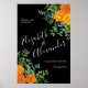 Orange & Black Gothic Peony Rose Floral Wedding Poster