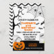 Looking for a striking orange, black and white Halloween children's birthday invitation? This design is sure to set the scene for a spooktacular upcoming Autumn or fall Halloween birthday party. It features some tomb heads, pumpkin, bats, spiders, cobwebs and spooky tree.