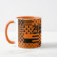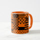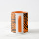 Orange and Black Mixed Patterns Patchwork Design of 16 Different Design illustration of Fleur-de-lis, crowns, hearts, Polka Dots, Greek key, irregular Abstract, Houndstooth, Trees, Harlequin, Stripes, Check, umbrella, anchor, Chevron, blob and flower floral illustration Designs.