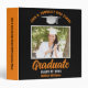 This modern orange and black custom senior graduation photo album features your high school or college name for the class of 2025. Customize with your graduating year under the chic handwritten script and white grad cap for a great personalized graduate binder keepsake gift. Fill with your photos or memorabilia. Add your photograph in the centre.