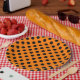 Orange Black polka dot party paper plate