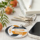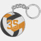 This team colours volleyball themed keychain for girls or boys features a realistic looking orange, black and white volleyball upon which you can customize the player's name, jersey number and court position, plus school or club name and mascot name in a varsity letter style font - by katz_d_zynes