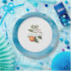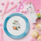 Set the table in style with Baby in Bloom paper plates. A blue watercolor background with orange blossoms and a soft white arched frame creates balance and elegance, turning a simple party essential into a coordinated, refined element for your celebration.