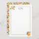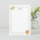 These personalized monogram stationery cards feature watercolor portraits of oranges and white flowers.