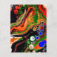 Modern abstract black, orange, blue, white and green digital pour painting cells marble fluid art.