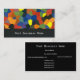 An eye-catching business card for many types of business, with an abstract pattern of blocks in burnt orange, dark blue, bright yellow, mossy green and black, with white lettering. Fully and easily customisable.