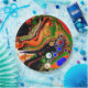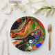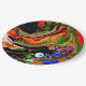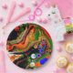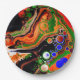 Orange, Blue, Green, Black Digital Fluid Art Paper Plate