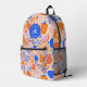 Orange Blue Monogram Fruits Vegetables Printed Backpack