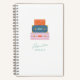 A stack of colourful suitcases sits at the top of this whimsical spiral-bound notebook. Beneath the luggage illustration is the phrase "Adventure Awaits". The back of the notebook features a coordinating diagonal stripe pattern. This notebook is perfect for anyone who is about to embark on a new adventure and wants to chronicle every second of it!