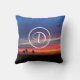 Orange blue sunset coastal photo custom monogram throw pillow