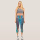 Orange Blue Teal Stained Glass Abstraction Pattern Capri Leggings
