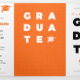 Orange Bold GRADUATE Letters and Cap Graduation Tri-Fold Announcement