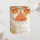 Une belle crème d'ivoire aquarelle et bordure dorée a de magnifiques fleurs de pivoines oranges en pleine floraison le long du bord supérieur et des tourbillons floraux délicats le long du dessus et à gauche qui forme un cadre autour de modèles de texte calligraphie personnalisable. Une superbe robe de mariée orange avec des tapis et un corps serré apparaît entre les deux fleurs donnant une touche d'élégance luxueuse au design général. Cette invitation est idéale pour un mariage d'été, de printemps ou d'automne qui se tient dans un jardin ou un lieu extérieur. Célébrez la mariée pour être avec ce design élégant, tendance et moderne qui est idéal pour une douche nuptiale, Quinceañera ou entreprise lancer leur nouvelle gamme d'vêtements de soirée et de robes mariages à clients.