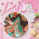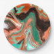 Orange Brown Abstract Art Birthday Party marble Paper Plate