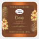 Make a lasting impression with this elegant and exotic product label design featuring lovely yellow and pink hawaiian flowers with palm leaves on a orange brown background. A cool palm leaf shadow matching to the shimmery border frames.