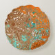 Orange, Brown, Teal and Turquoise Abstract Art Round Pillow