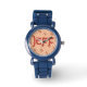 Brighten up your child's day with our Blue Silicone Kids Watch, featuring a playful design with dinosaurs and a personalized monogram. The vibrant blue colour adds a cheerful touch, while the whimsical dinosaur illustrations bring charm and fun. Customize it with a name or initials to make it uniquely theirs. This silicone watch is perfect for kids, offering durability and comfort for daily wear. With its easy-to-read dial and adjustable strap, it's both practical and stylish, making it a favourite accessory for young adventurers.