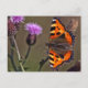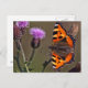 Orange butterfly on purple thistle flower postcard