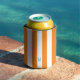 Orange Cabana Stripe & Personalized Teal Monogram Can Cooler