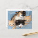This cat-themed postcard design features a digital colour photograph of domestic (American) shorthair (DSH) orange tabby, calico, and black and white shelter kittens from Frederick County Animal Control. It makes a unique gift for cat lovers!