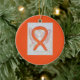 The guardian angel ornament features the painting of a orange cat awareness ribbon angel. Orange cat awareness angel ribbon art can be customized with personalized messages to make great cause ornaments or pendants for fundraisers, awareness Christmas or holiday gifts, or other special events or occasions.