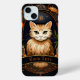 Orange long-haired cat in a vintage art nouveau style with orange and green floral accents on a black background. Customizable with your text, name, initials, or whatever you choose.