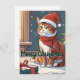 Orange cat with Christmas hat cute animal pet Holiday Card