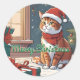 Add a festive touch to your holiday cards and gifts with this adorable round sticker featuring an orange cat in a Santa hat! Perfect for sealing envelopes or adorning wrapped presents, this playful kitty brings warmth and charm to all your holiday greetings. The bright orange fur and cozy Santa hat make this sticker a delightful addition to any Christmas packaging, adding an extra layer of joy for cat lovers and holiday enthusiasts alike. Make your cards and gifts purr-fectly memorable with this cute and cheerful sticker!