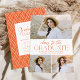 Celebrate the graduate with our stylish photo graduation party invitations! The modern graduation party invitation displays 3 of the graduate's senior photos. The phrase "cheers to the graduate" is featured in trendy orange lettering. Personalize the front of the graduation invitations by adding the graduate's name, school name, and graduation year. The invitation reverses to feature your graduation party details with a fun orange and white trellis pattern background.