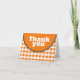 Ces cartes de remerciement classiques et polyvalentes sont conçues avec "merci" en caractères blancs gras dans un demi-cercle orange sur un motif orange et blanc en vichy. Ce motif est un choix honoré pour Baby showers et anniversaires. L'intérieur est imprimé sur mesure avec votre propre texte, ou le texte modèle peut facilement être supprimé pour laisser l'intérieur de ces cartes en blanc pour écrire à la main vos sentiments de remerciements. Pas de commande minimum. Des remises en vrac s'appliquent.