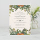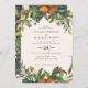 Orange citrus watercolor floral and foliage wedding invitation. Beautiful handprinted floral watercolors and modern script text. Modern on trend rust colour.