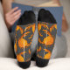 Orange crab icon. Seamless pattern. Custom background colour. Custom top stripe colour. Custom text on each sock.