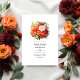 Orange, cranberry, and green floral wedding invitation. The QR code on the reverse directs to your wedding site where people can learn more and rsvp.