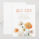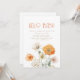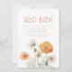 If you love simple boho style, this invitation is right for you. The invitation features an elegant design, with a soft, white background. In the centre, the party details are beautifully scripted in an orange text exuding an air of sophistication. At the bottom, soft orange and cream wildflowers gently sit. Invite guests to your baby shower party in style. Background colour and text is editable.