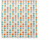 This colourful mid century modern shower curtain features turquoise blue, two shades of orange, cream, and tan circles on a black lined grid. Add that bit of fun to your bathroom!