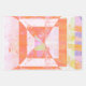 Mixed media geometric designs in gorgeous and vibrant shades of orange, pink, lilac, and green. Heavily textured layers of hand paintings and digital media.