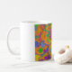 A pile of brightly coloured cupcakes decorated with marshmallows, chocolate stars, hearts, jelly sweets. sprinkles and glitter - ready to eat! Mug with a blue, pink, yellow, green, purple and silver customizable design for you to personalise with your own text, pictures and ideas. An original photograph stylised using digital techniques by Jess Perry.