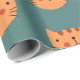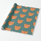 Orange cute Cat Green Wrapping Paper