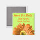 This stylized orange daisy flower "save the date" magnet makes the perfect accent for your wedding, shower or party invitations. Click on "customize it" to select a different background colour or add text.