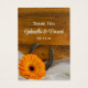 Attach the charming and elegant Orange Daisy and Horseshoe Country Wedding Thank You Favour Tag to your party favours or small gifts to thank your guests for attending your informal yet elegant ranch style engagement barn party, bridal shower or marriage reception. Add an optional personal message, if desired. These country chic custom equestrian theme wedding favour tags feature a quaint floral photograph of a orange daisy flower blossom, rusty horseshoe and a white bridal veil with a rustic brown weathered barn wood background.