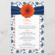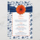 Orange Daisy Navy Blue Damask Wedding Menu Card