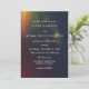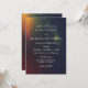 Modern wedding invitation featuring a photo of the Milky Way in orange, green, dark red, and midnight blue.