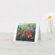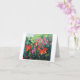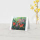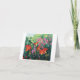 A note card with beautiful red orange daylilies, fuchsia vining flowers and poppy seed pods based on an oil painting by Joan C. Thomson of a garden in the Shenandoah Valley of Virginia