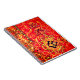 This notebook has an orange design on it.