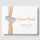Elegant diamond hearts with a orange ribbon decorate this guestbook. Wedding guest books are fun for both the couple and their celebrants. Invite attendees to leave you well-wishes at your reception, and you're guaranteed to have a keepsake to look back on for years to come. Plus, your guests will get to leave their mark on your event, not to mention put in writing whatever they didn't have a chance to express in person on the big day. Personalize the book by changing the text in the fields provided. You can change font style, size, and colour.