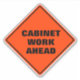 Funny classic orange diamond caution road sign warns of cabinet work ahead in a thick black sans serif font. Perfect for the woodworker, carpenter, cabinet maker hobbyist.